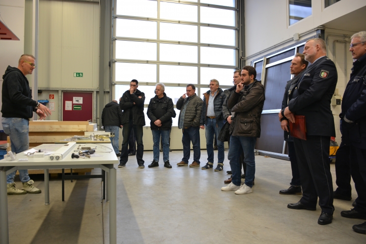 Hier informierten sich die polizeilichen Berater direkt vor Ort, wie genau die Prüfung und Zertifizierung der von der Polizei zur Verhinderung von Wohnungseinbrüchen empfohlenen Sicherheitstechnik erfolgt. Sie lernten die verschiedenen Prüfstände kennen und schauten bei einer Einbruchschutzprüfung zu. Zudem erfuhren die Polizisten etwas über Abläufe, Inhalte und Ergebnisse der Prüfungen.